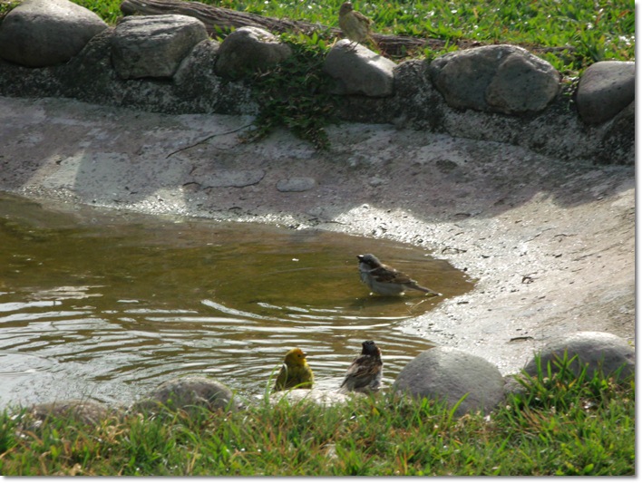 e passarinhos fazendo a festa em dia de calor.